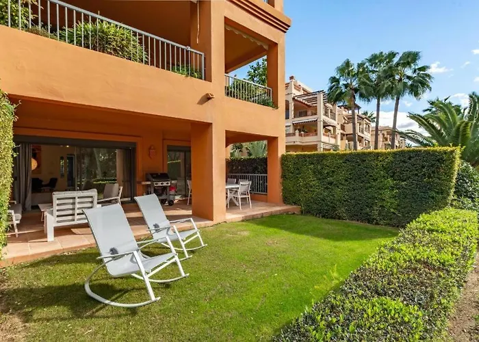 Situado en Estepona, Paraiso exclusivo, Elegante piso en Marbella Estepona, un apartamento de 100 m², está a unos 3 km de Golf La Quinta, ofreciendo a sus huéspedes sauna. El apartamento cuenta con una piscina y una terraza con vistas al jardín.